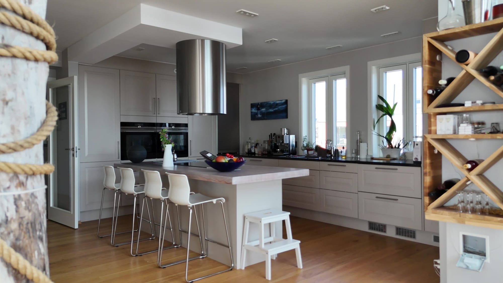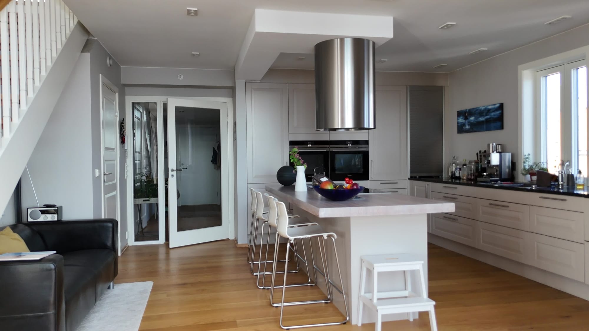 - Stilfullt kjøkken, integrerte hvitevarer.